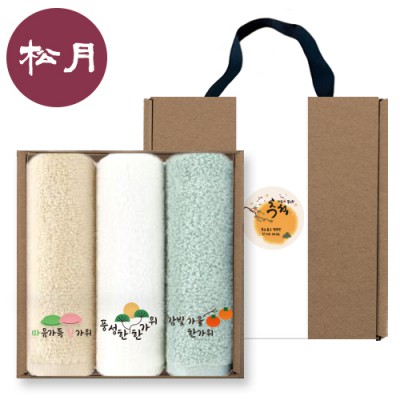 - 송월타올 추석 핸들 패키지 3매입 세트 NO.1 (호텔수건 130G 30수 3매+띠지)