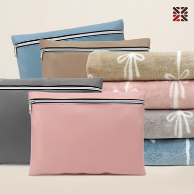 - 에코벨라 메리 벨보아 양면 담요&그레이 파우치세트 M