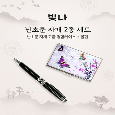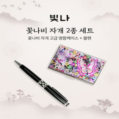 - 빛나 꽃나비 2종세트 (자개명함케이스+자개볼펜)