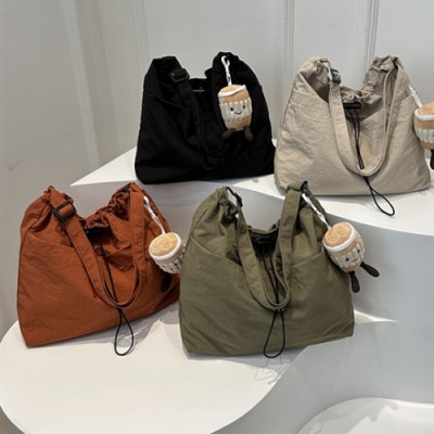 - 룩앳걸 심플 대용량 여성 캐주얼 드로스트링 숄더 크로스백 4color