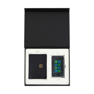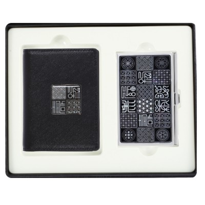 - 블랙다이아가죽명함지갑+수복창살문블랙 자개명함케이스