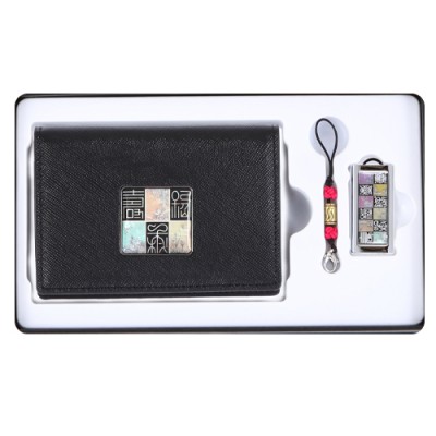 - 블랙다이아콤비소가죽명함지갑+채색십장생자개USB( 8GB~64GB)