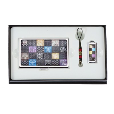 - 수복문자도자개소가죽명함지갑+수복문자도자개USB(8GB~64GB)