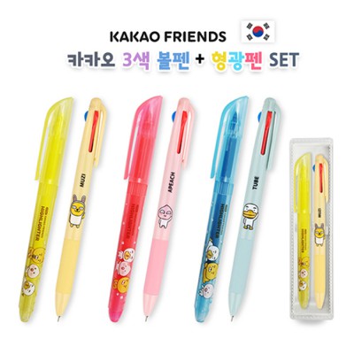 - 카카오 3색 볼펜+형광펜 세트