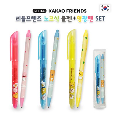 - 카카오 리틀프렌즈 노크식볼펜+형광펜 세트