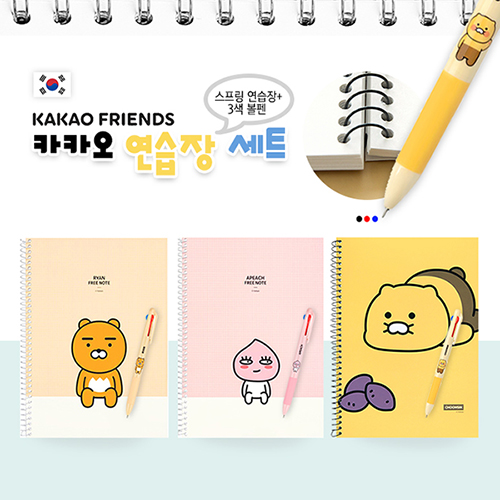 카카오 연습장 세트 (스프링 연습장+3색볼펜)