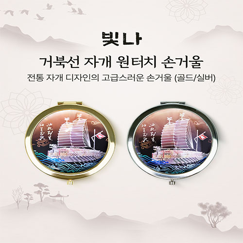 빛나 거북선 자개 원터치 손거울 (실버/골드)
