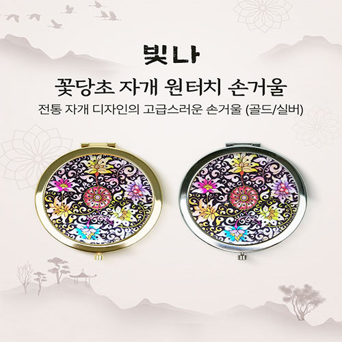 빛나 꽃당초 자개 원터치 손거울 (실버/골드)